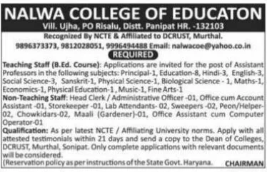 | Post Name: | Nalwa college of education panipat recruitment 2026 |